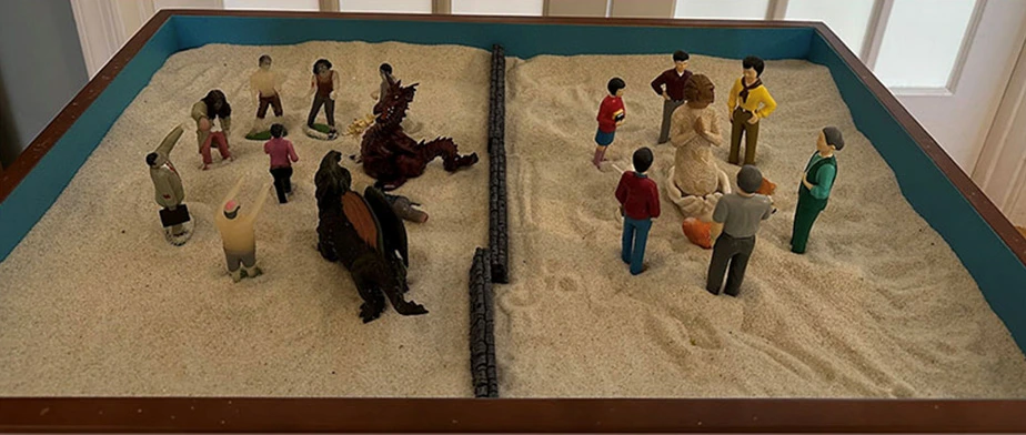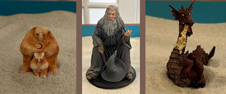 The sandtray is a great tool for exploring parts in Internal Family Systems therapy. A client can choose miniatures to represent their parts and arrange them in the sandtray. Seeing the parts physically represented in the sandtray makes it easier to see how they act and interact.