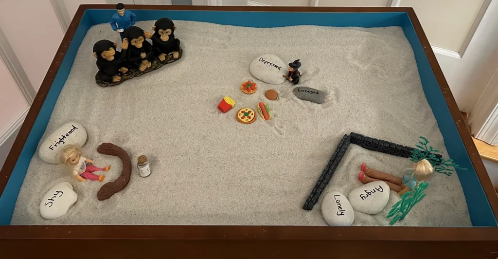 In my practice, sandtray therapy serves as both a standalone approach and a perfect complement to IFS and EMDR work for adult clients. The process is simple, yet remarkably revealing: