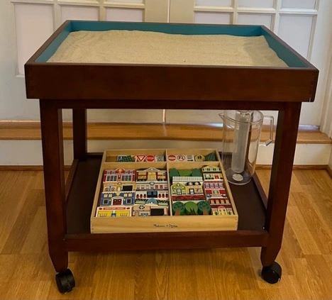 This is my sandtray, some miniatures, and a pitcher that can be used to add water to the sandtray:
